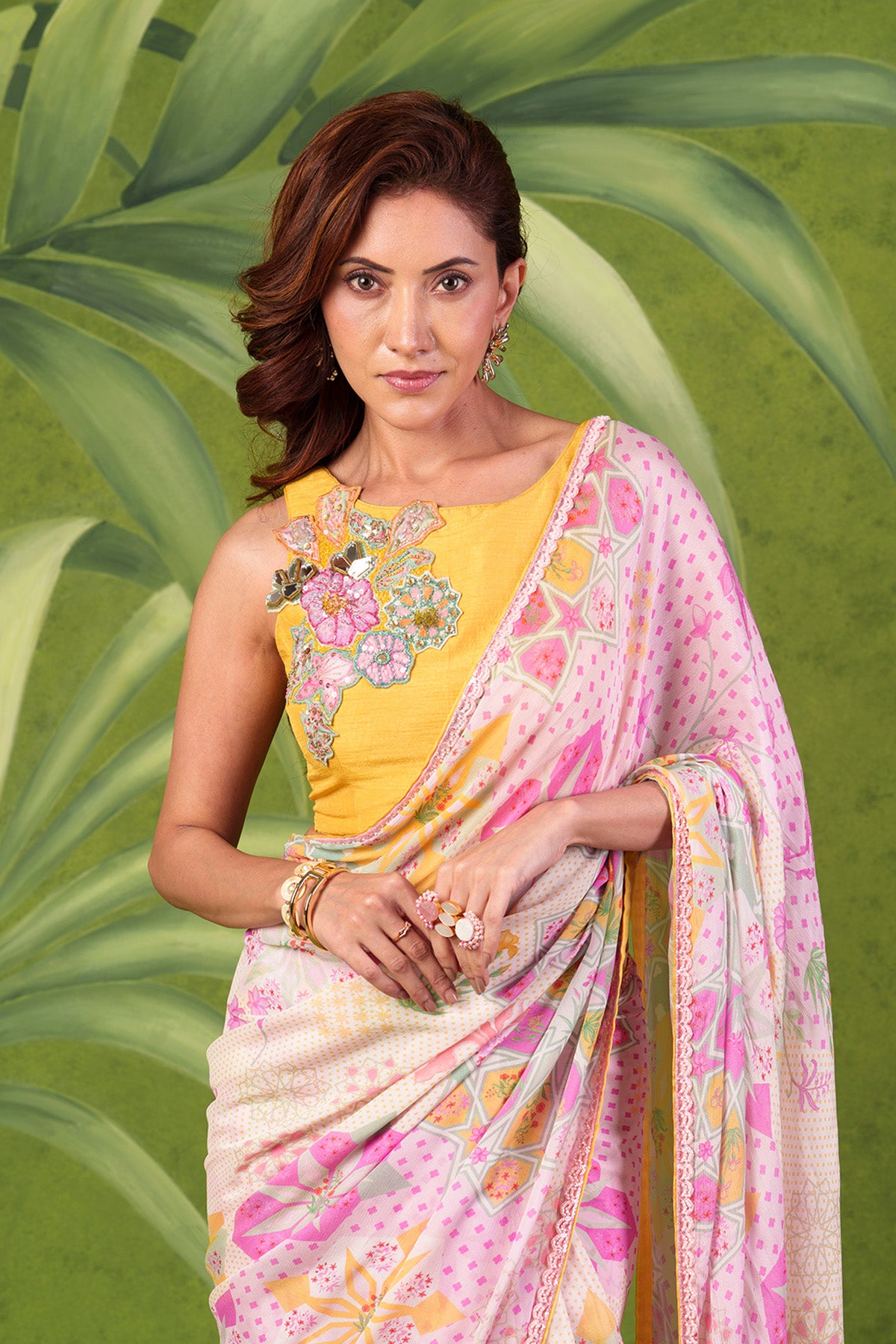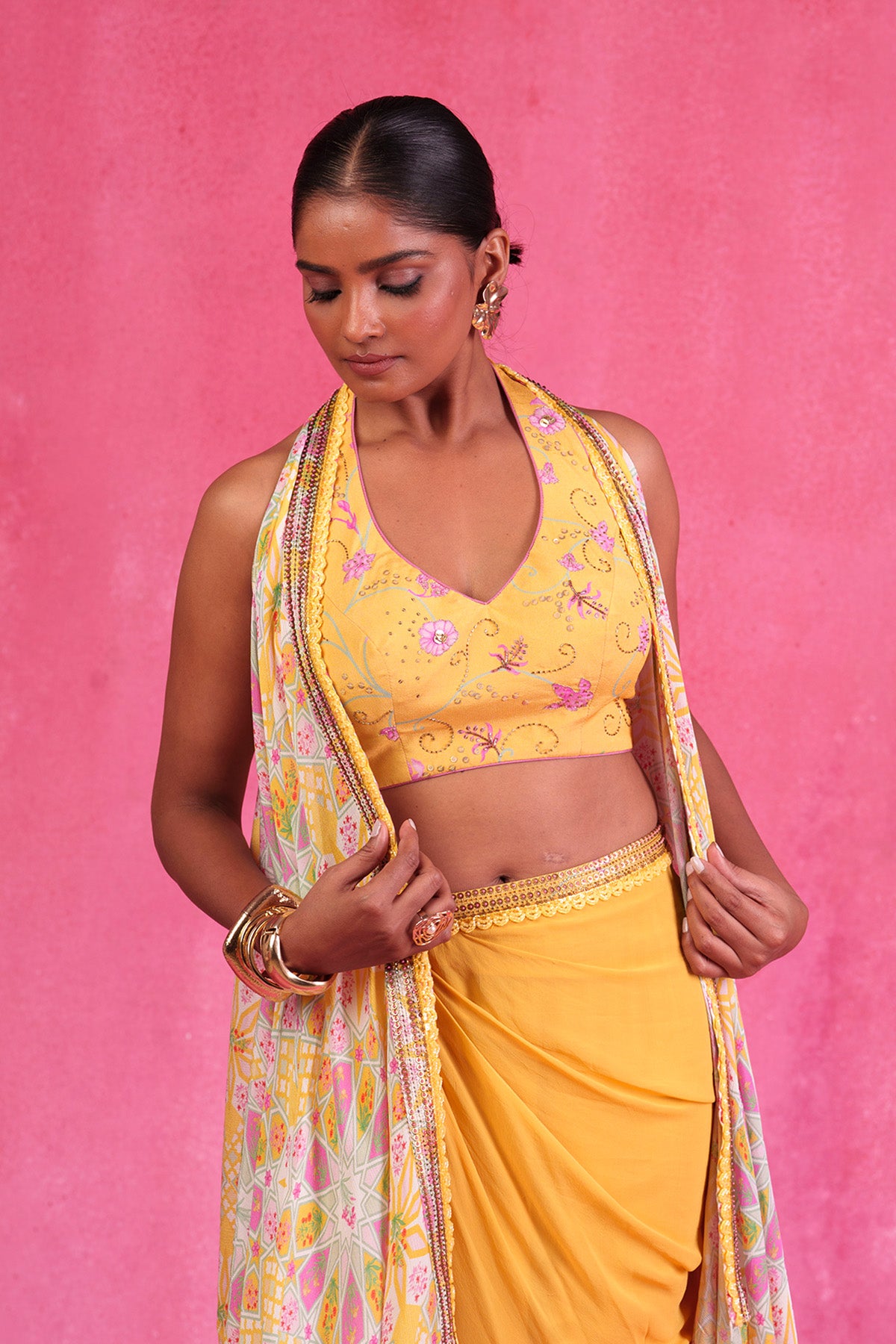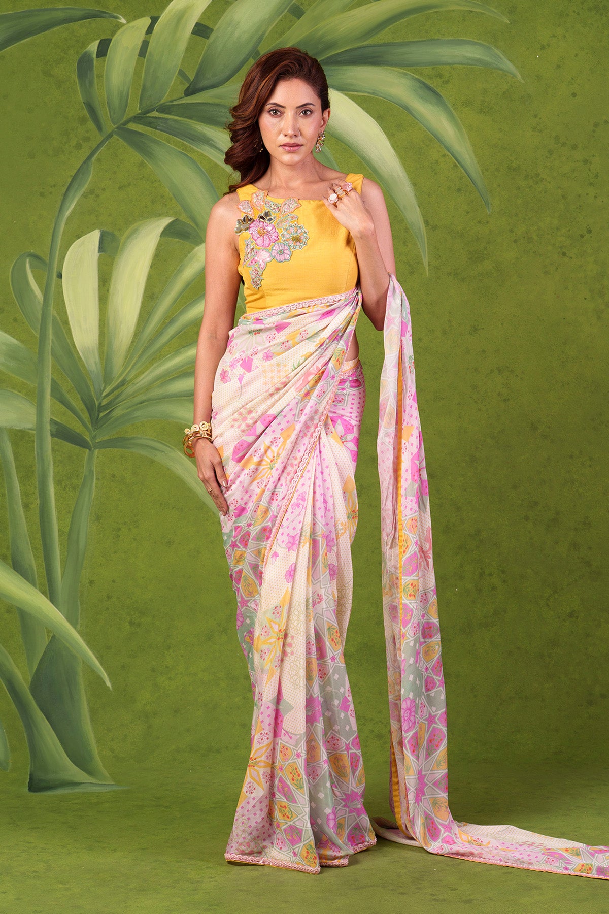 Opulent Multi colour Pre Draped Saree