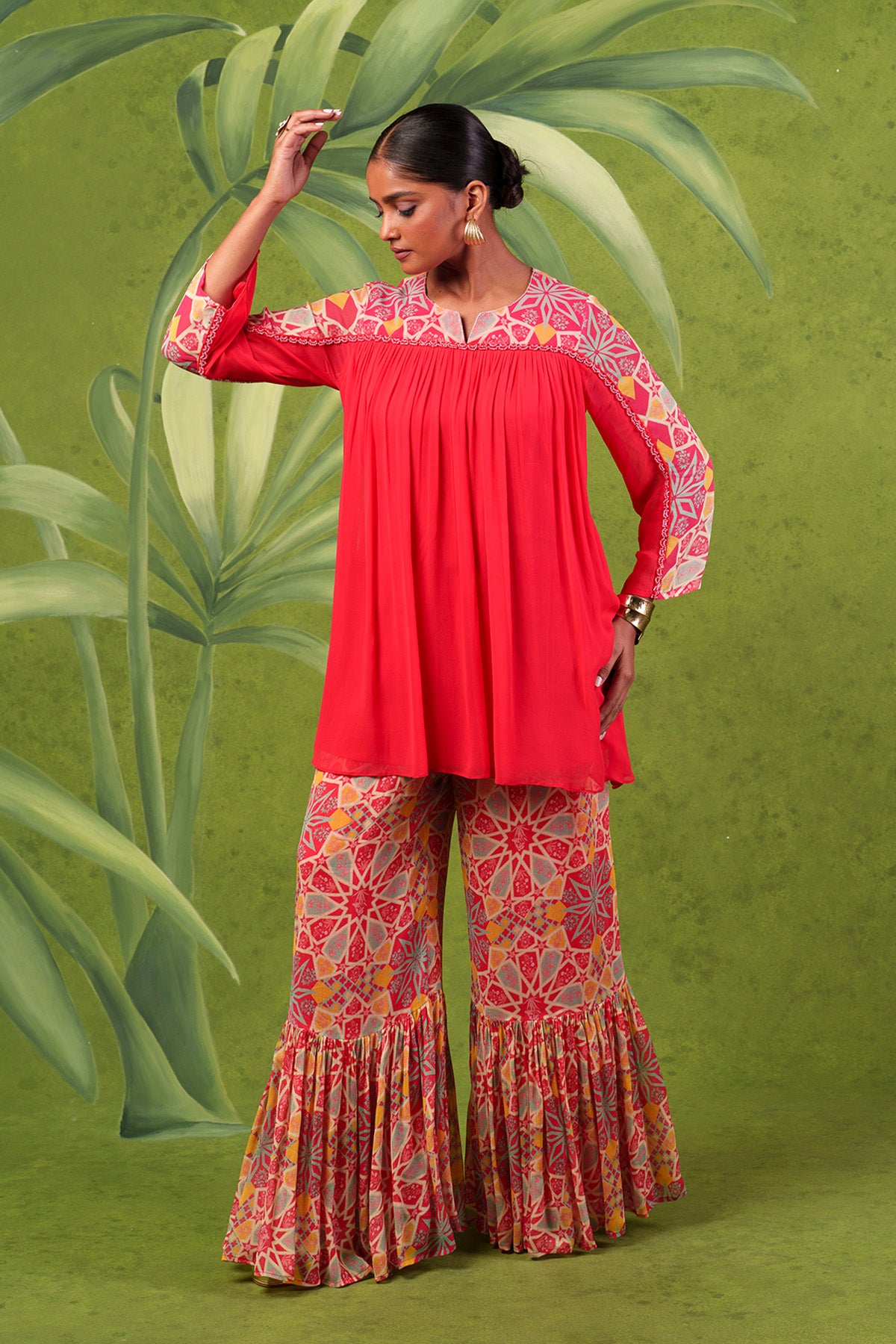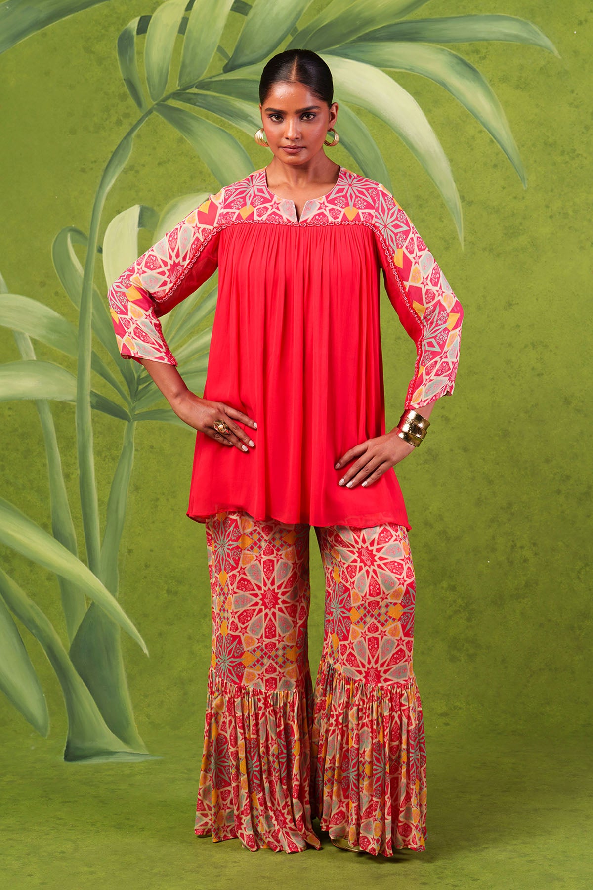 Breeze Red Sharara Set