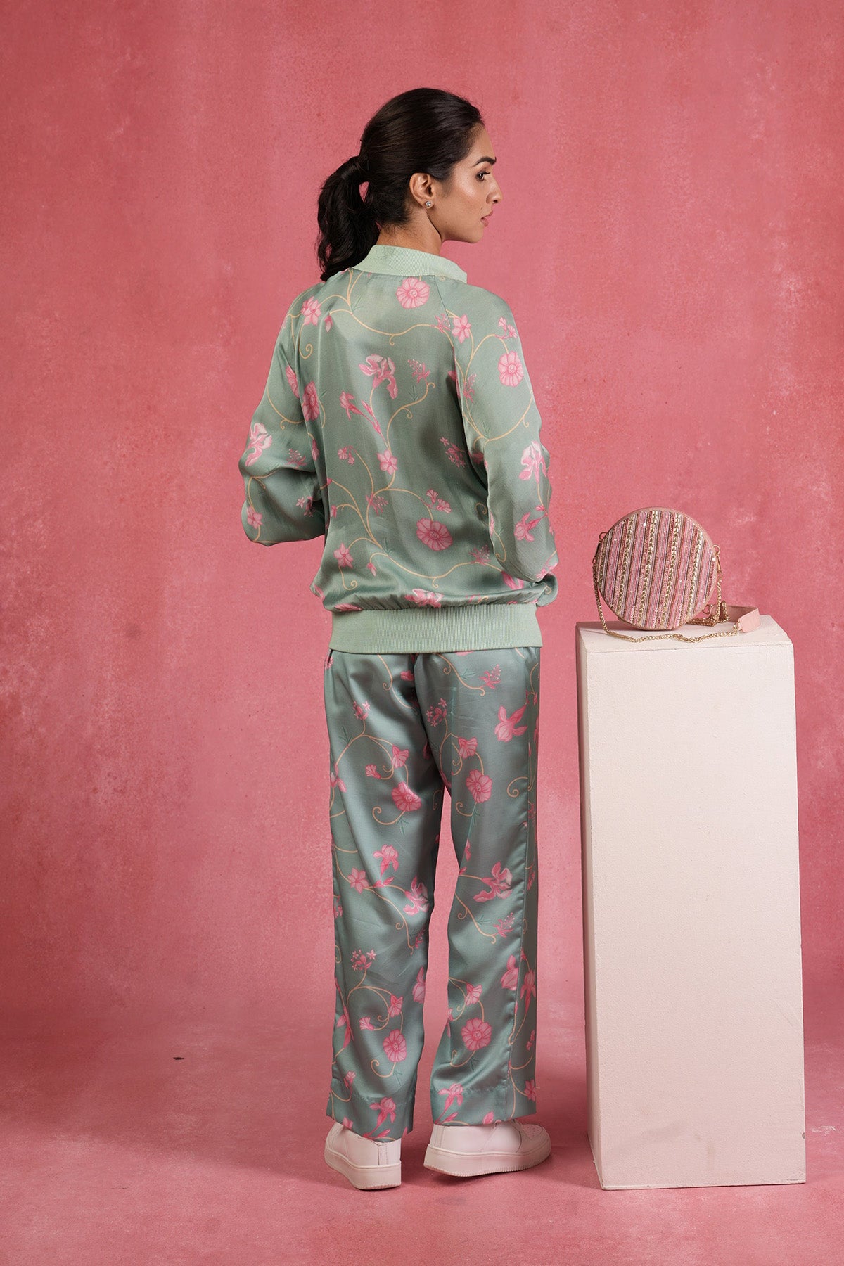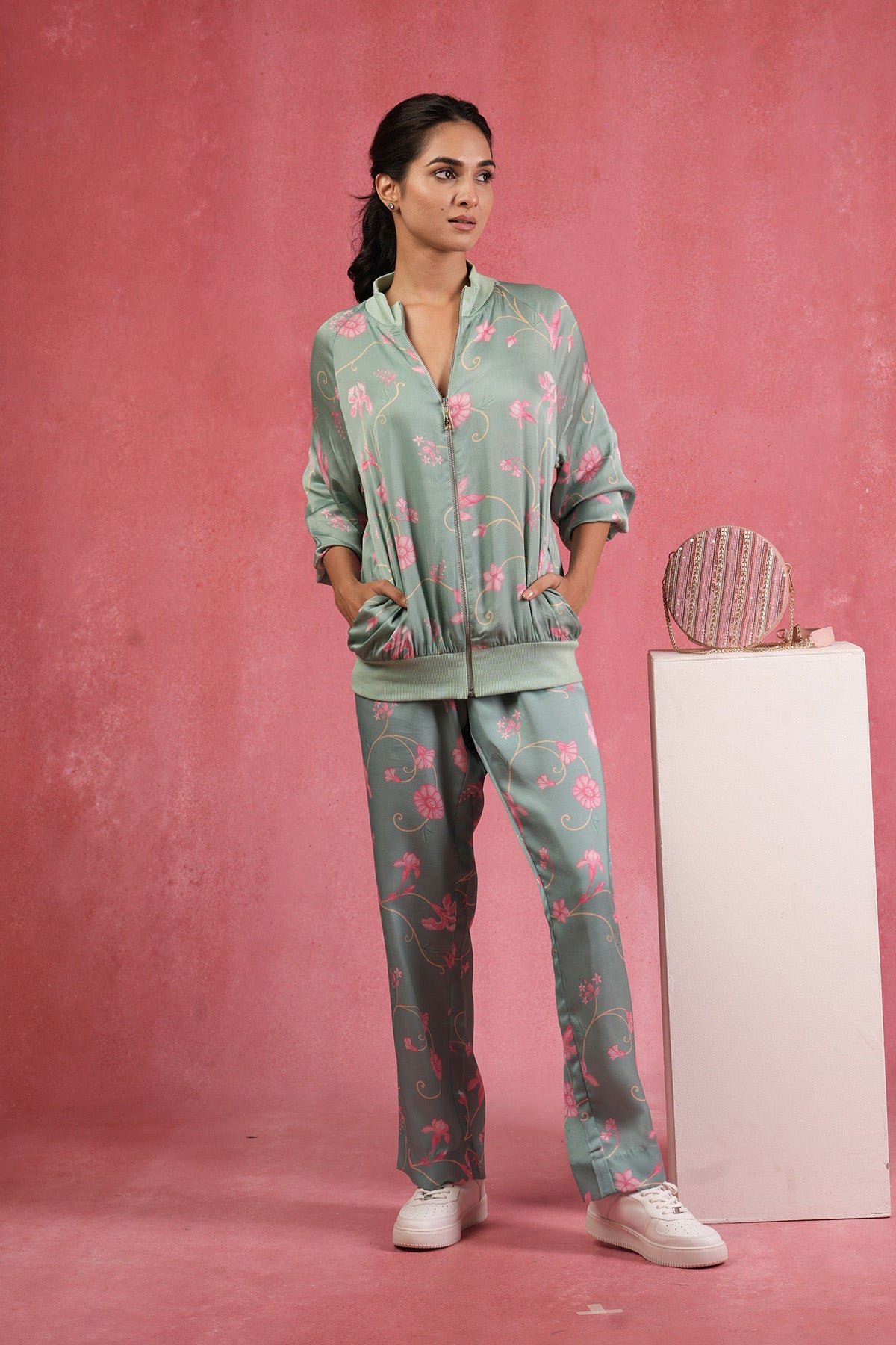 Flora Sea green Co-Ord Set (Bomber Jacket)